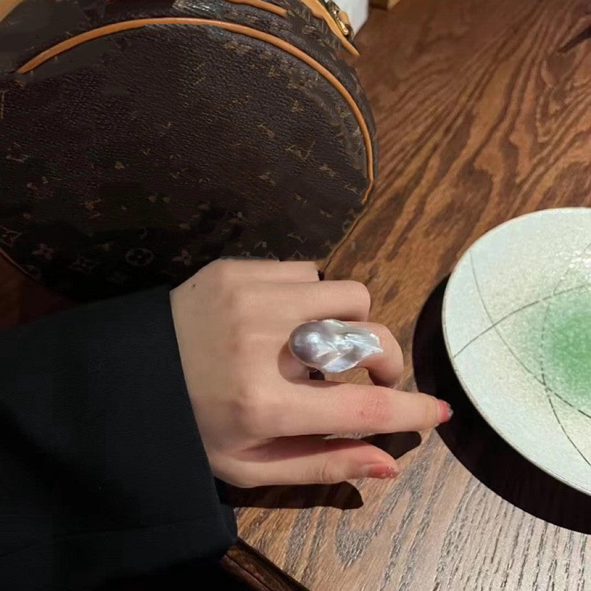 The ring showcases an exquisite white freshwater baroque pearl, each one boasting its own irregular shape, ensuring that your piece is truly one-of-a-kind. The electroplating technology used enhances its shine while providing lasting durability, making it perfect for both everyday wear and special occasions.