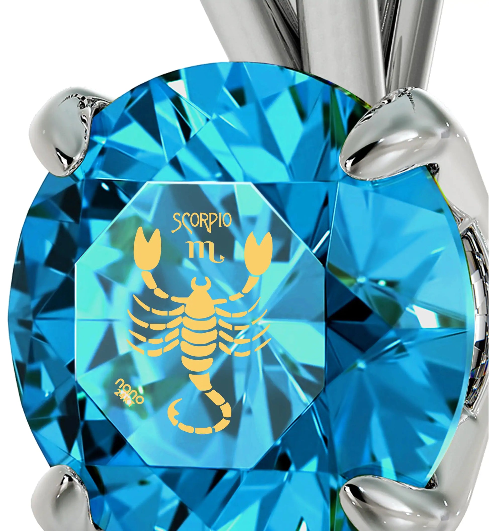 Experience the enchantment of a brilliant round-cut crystal Swarovski, delicately inscribed with the image of Scorpio, the scorpion and star sign symbol, gracefully set in a timeless 925 sterling silver solitaire pendant. With attributes of loyalty, intensity, and ambition, Scorpios emanate magnetic allure. Celebrate your birth month or surprise a special woman with a zodiac necklace that resonates with her unique essence. This cosmic celestial necklace holds the power to impress, making it a remarkable birthday or anniversary gift. Whether for your wife, girlfriend, daughter, or best friend, the imaginative surprise will leave her awestruck. It's also a thoughtful choice for Mother's Day, allowing moms to embrace their child's birthstone color and zodiac sign, capturing profound connections in a captivating accessory.