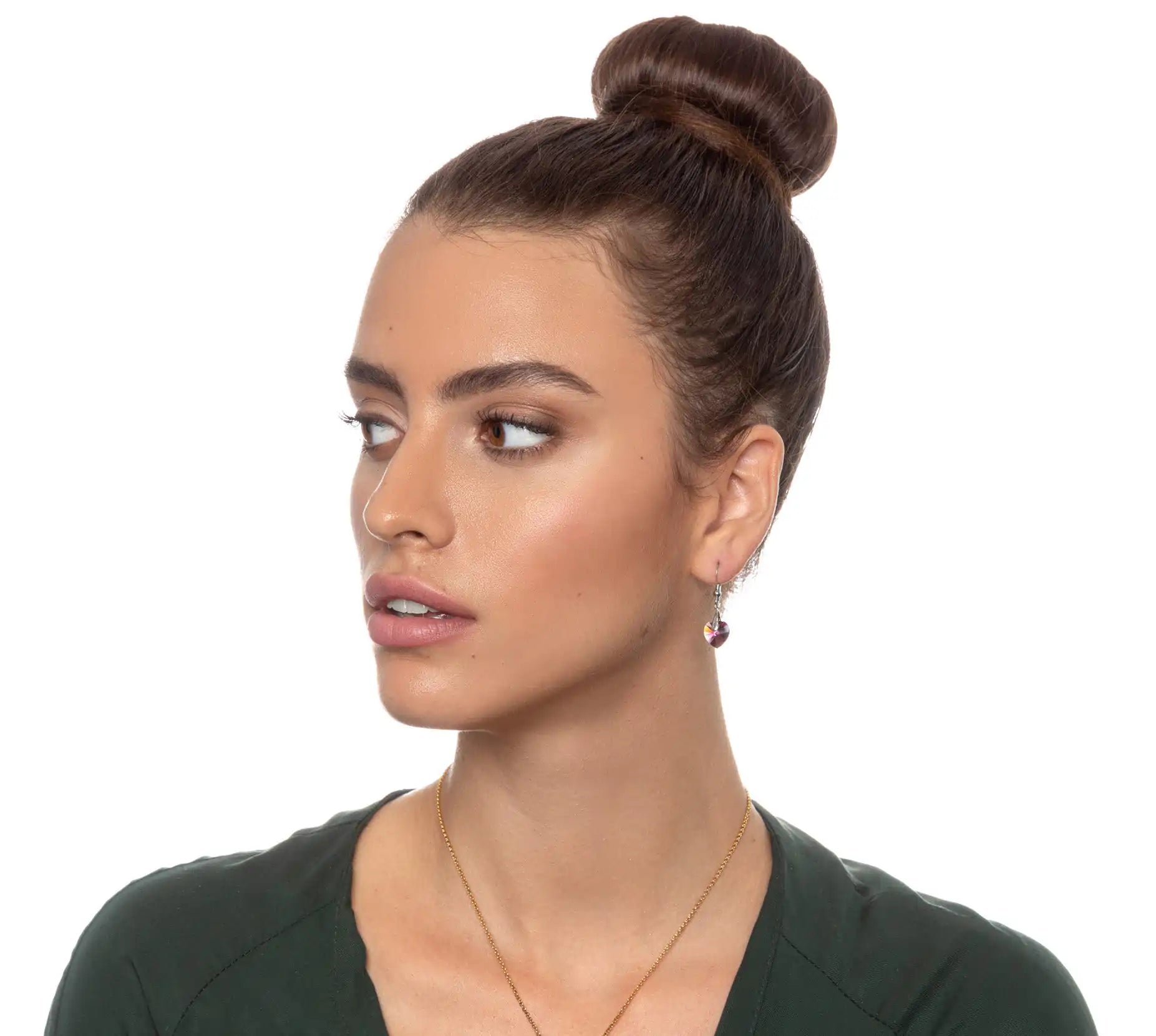 Faceted Swarovski crystal heart earrings for women, with 925 sterling silverĀ pinch bail and fish hooks.